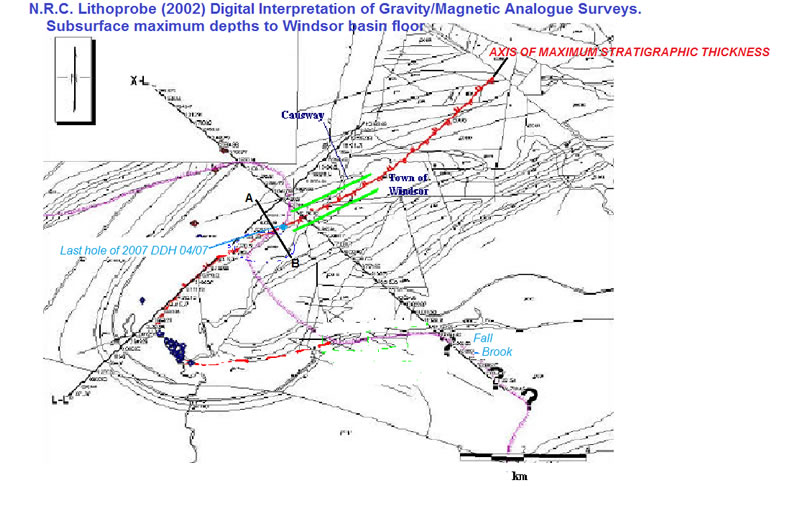 • Also obtained and integrated is the NRC Lithoprobe’s regional geophysics data and interpretations that fortunately was focused to its highest resolution centered on the close near center of the claims.